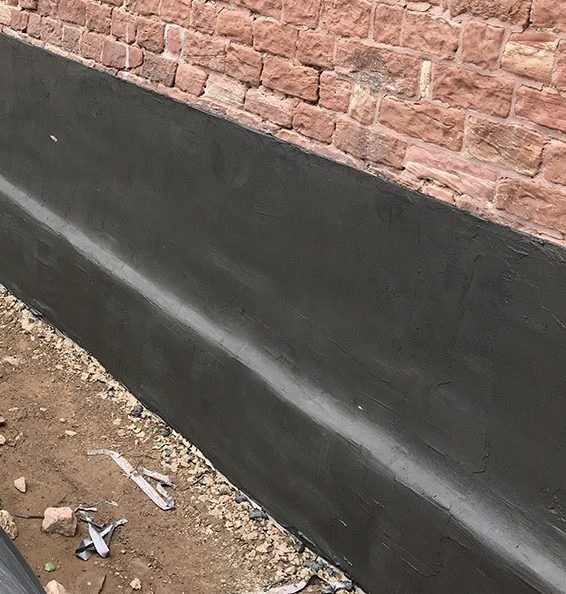 durch Abdichtung von erdberührten Bauteilen (Keller, Sockel) mittels Materialien wie Bitumen, Folien Beschichtungen oder speziellen Betonen (WU-Beton.